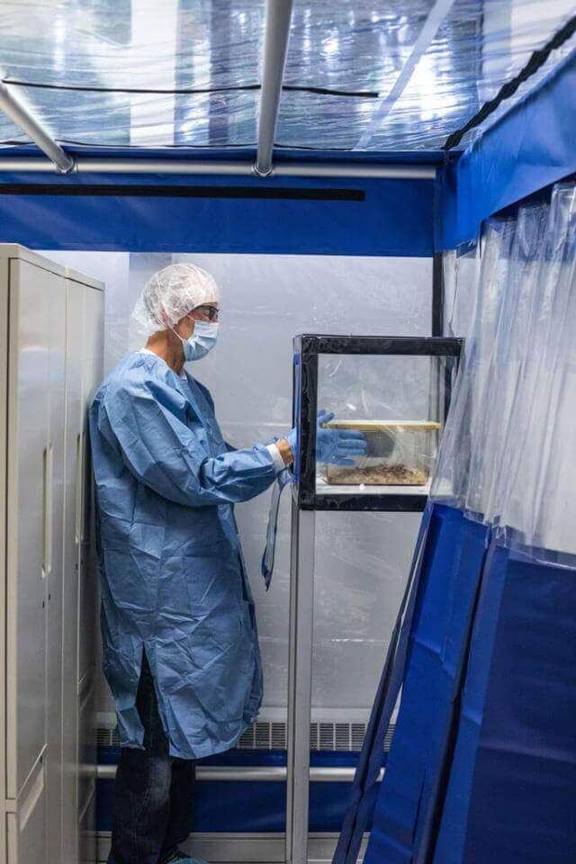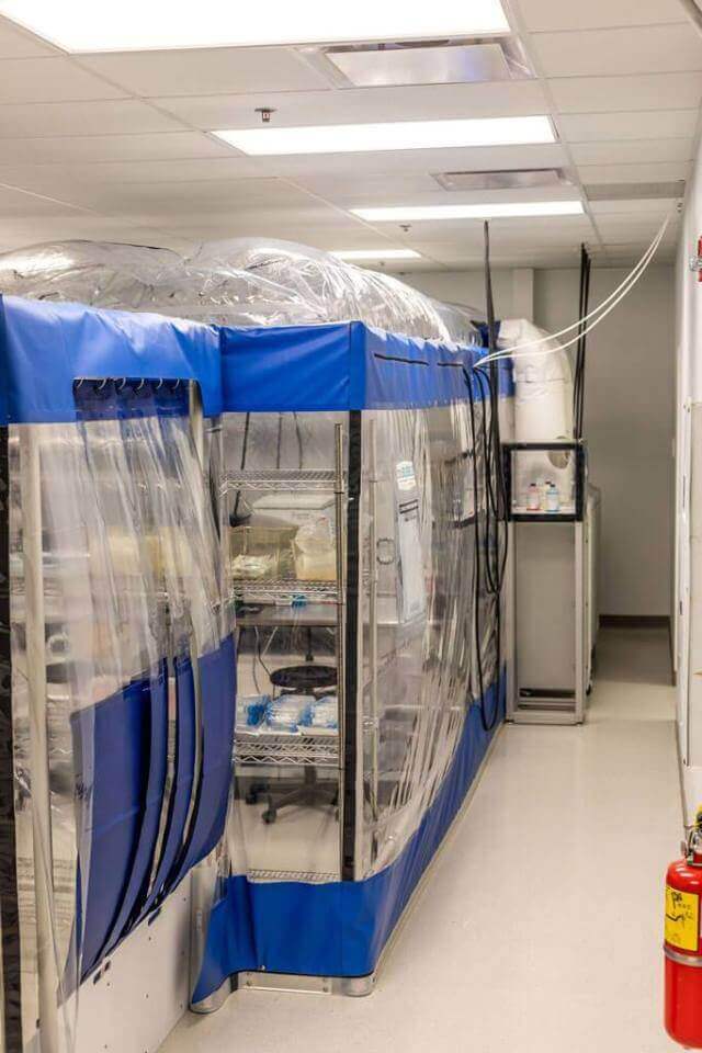 Solution: Create a freestanding, portable, positive pressure cleanroom that operates at 50 HEPA filtered air changes per hour.